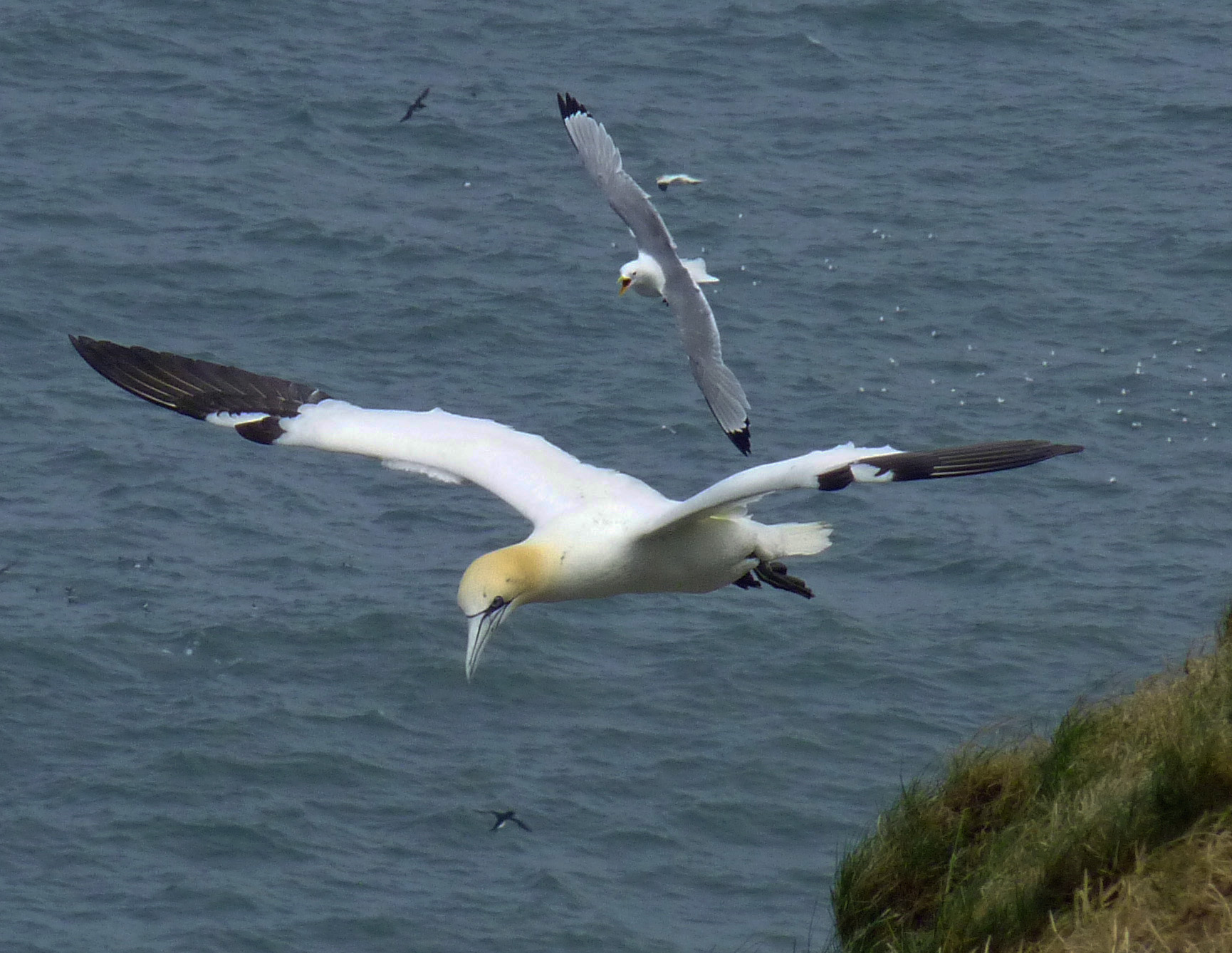 We ended up at Bempton which for me always seems to be windy and today was no exception but the birds were about which gave me a chance to practice my in flight shots. All the usual species were about Gannets, Razorbills, Guillemots, Puffins (you can tell were the Puffins are they always draw a crowd), Kittiwakes, Herring Gulls, Tree Sparrows, and we also chanced on Corn Bunting, Whitethroat and Willow Warbler no unusual birds for us today