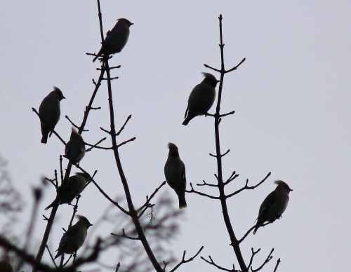 Late Saturday brought news of waxwings in the Huddersfield area so an early door visit on Sunday morning was made to the location to find about 40 birds resting in one of the trees