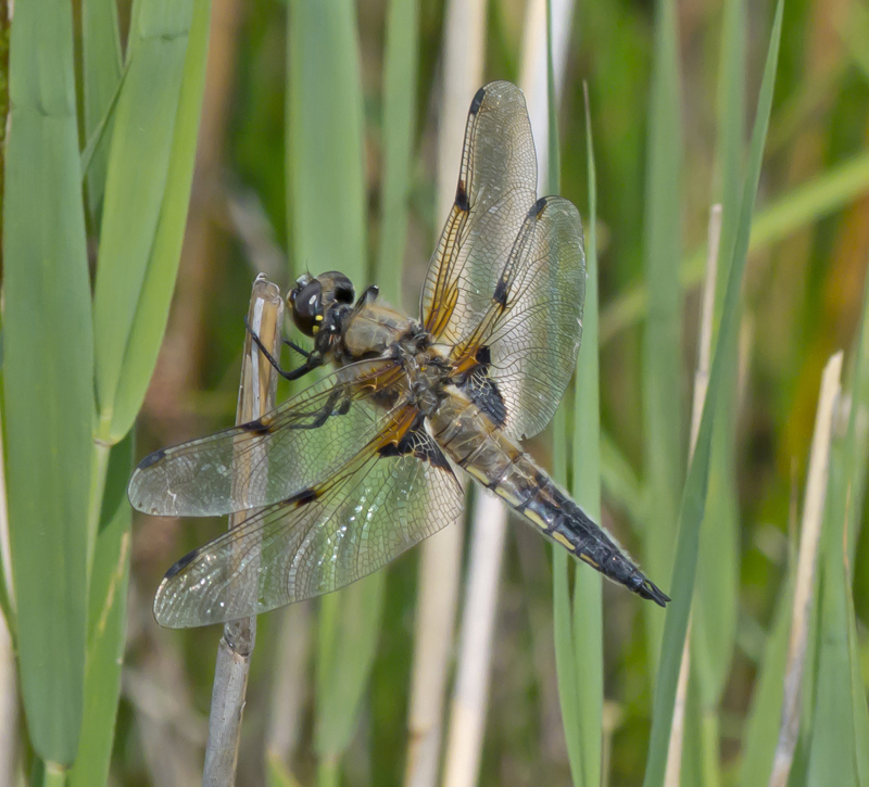 With the jobs done and out of the awy in the morning we rewarded ourselves with a trip out to Old Moor in the vain hope that we would get to see some Dragonflies for our day menu. After having our sandwiches on arrival we made our way on to the reserve with our first stop being the feeders to catch up on some common bird species Tree Sparrow, Chaffinch, Bullfinch, Greenfinch, Goldfinch, Collard Dove, Woodpigeon, Robin, Dunnock, Great Tit and Blue Tit all made a good start to the day. The nettle bed favoured by Damselflies had been chopped down since our last visit so we made our way to the pond dipping pools. Dragonflies were proving difficult to find there was the odd 6 Spot Burnet Moth about but it wasn’t until the last pond that a Dragonfly flew past, then another, on counting there was two Four Spotted Chasers, Brown Hawker with a Common Darter joining them, they were beautiful to watch and at one point buzzed us whilst we stood on the bridge over looking them, fantastic, taht lead us nicely into a coffee break.