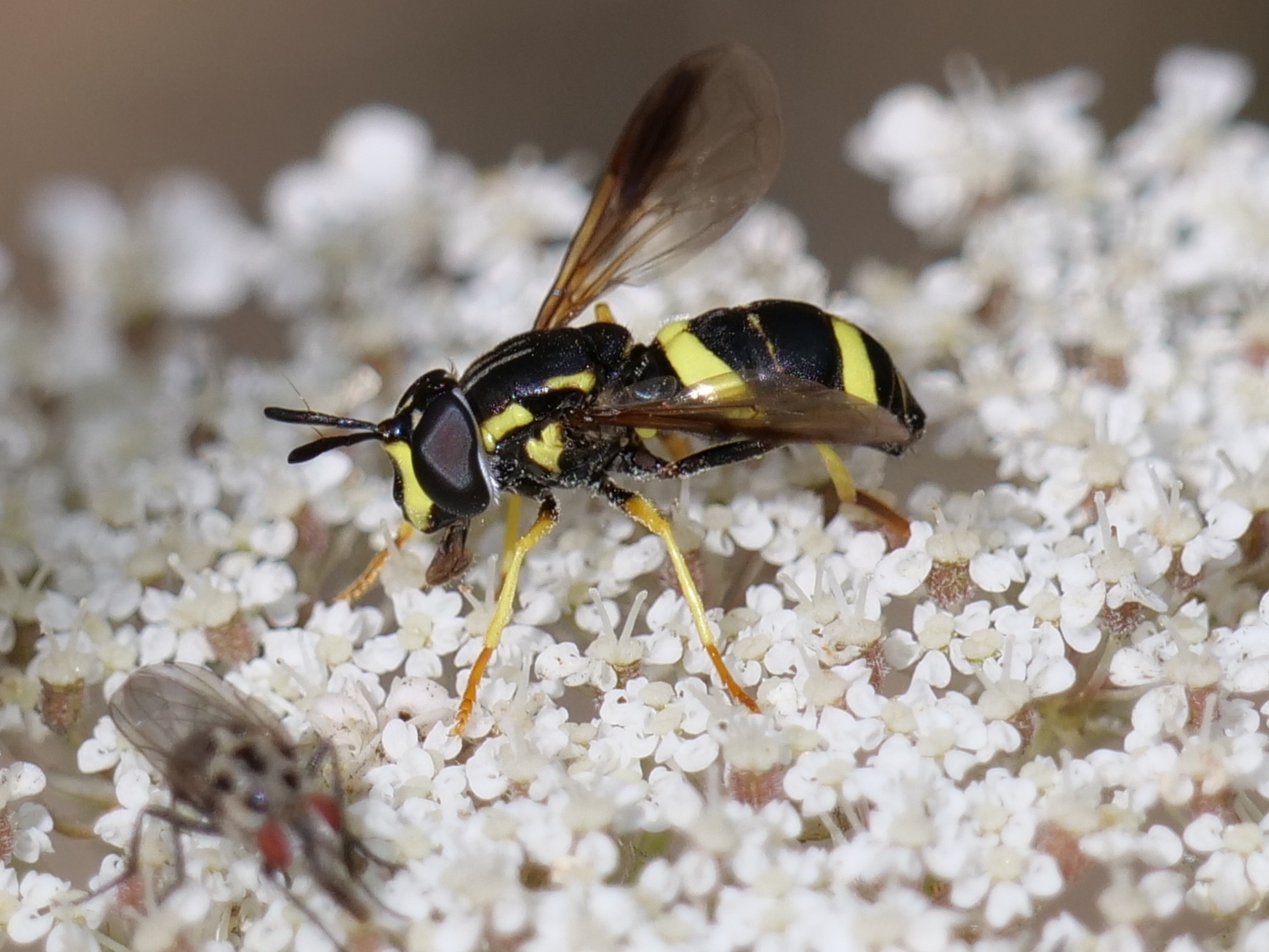 I faired better with the hoverflies and walked away with Chrysotoxum bicinctum, Episyrphus balteatus, Eristalis arbustorum, Eristalis pertinax, Melangyna umbellatarum, Myathropa florea and Syrphus ribesii