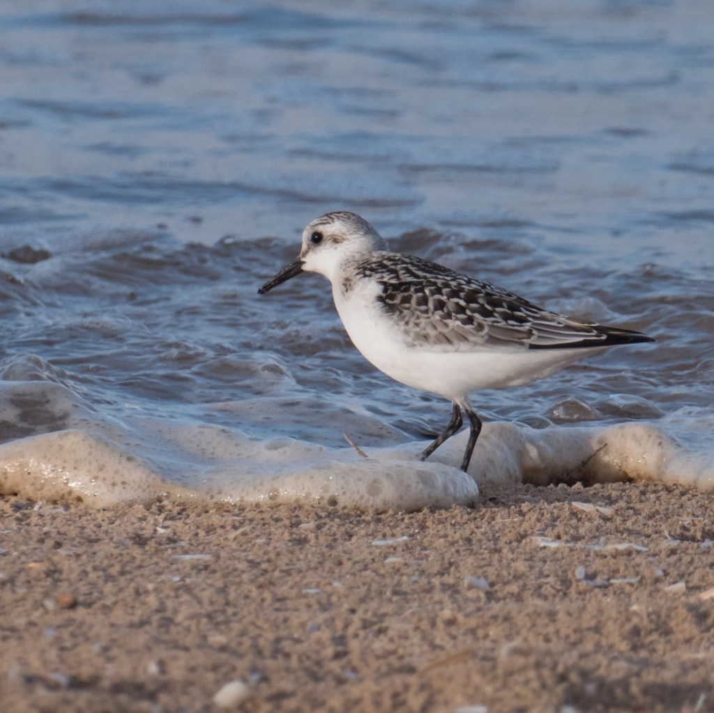 I decided on having a last look down on the beach, since I was close, the tide was now in. Running up and down the tide line were Ringed Plovers, Knot, Dunlin and Sanderlings, I enjoyed the moment of watching these birds close by and also took a few photos.