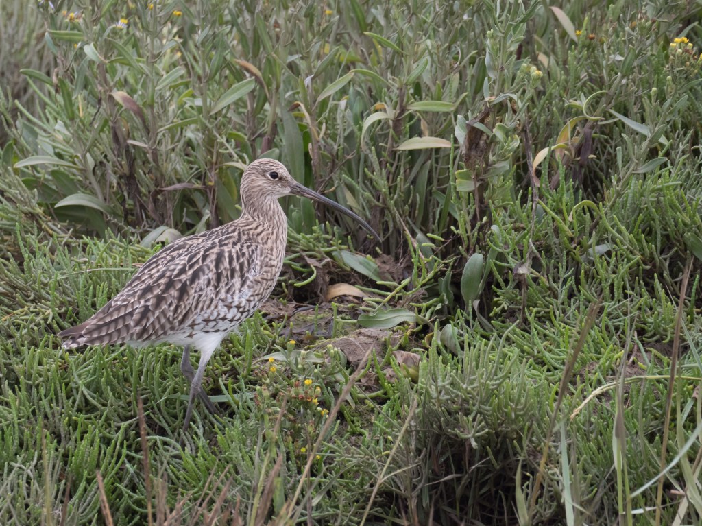 I headed towards the beach, Golden Plover were still around in good numbers, still on the banking of the fresh marsh. I sat down again on one of the benches and set about scoping the marsh. A Sparrowhawk was picked up at the far side of the marsh, happily sitting on a fence, a Wheatear was nearby, but yesterdays Little Stint was nowhere to be seen, still plenty of Black tailed Godwits on the scene with Lapwings a few Pied Wagtails, Ruff, Redshanks, Dunlins, Avocet and a couple of Curlew Sandpipers with a Cetti’s Warbler calling nearby.