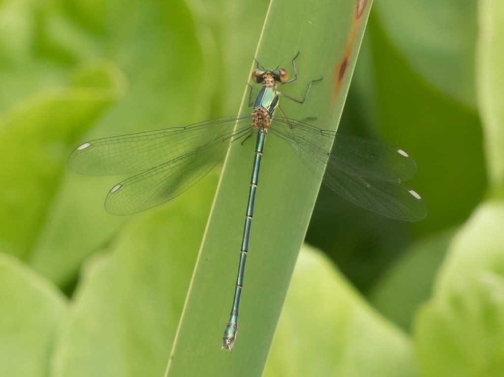 I sat and waited, a Blue tailed Damselfly flew passed, male, drifted out of sight, then a female Emerald Damselfly settled on nearby vegetation. I took a few shots. It was a little too far the the 40-150mm lens, which I had on at the time. It was an Emerald Damselfly. However, looking at the photos, there was no sign of Blue, and it had pale wing spots (Pterostigma), I started looking for the spur on the thorax, and there it was, where it should be, I’d found my first local Willow Emerald Damselfly, female, it don’t get much better than that. To finish the visit off, I finally found a couple of female Emerald Damselflies on the nearby bramble patch.