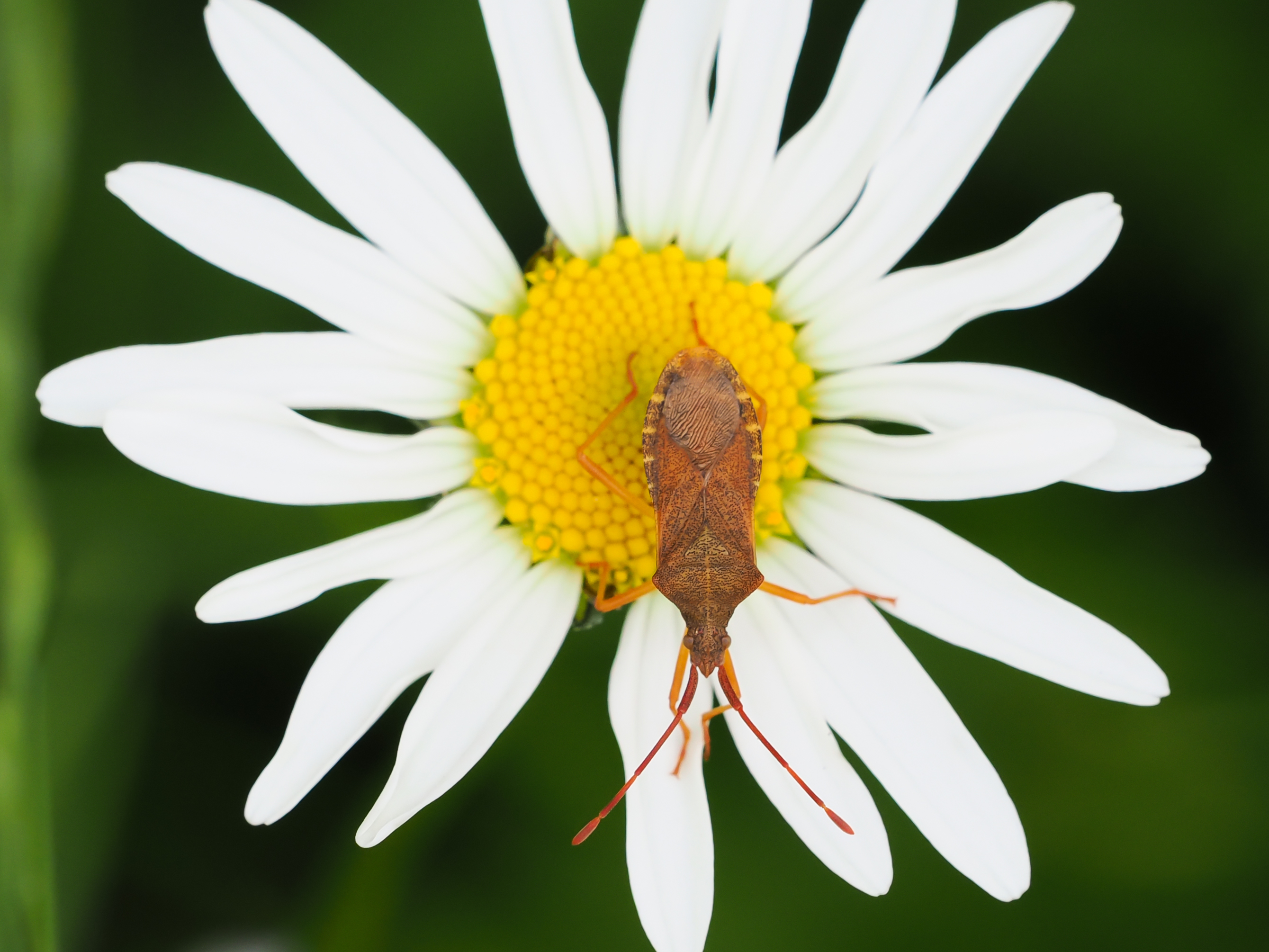 Gear together and off I set, my first insect contact turned out to be a new sighting for me in the form of a Dock Bug, located near the first pond, before you get to the hub, on the left side, it was resting on the Ox-eye daisies.