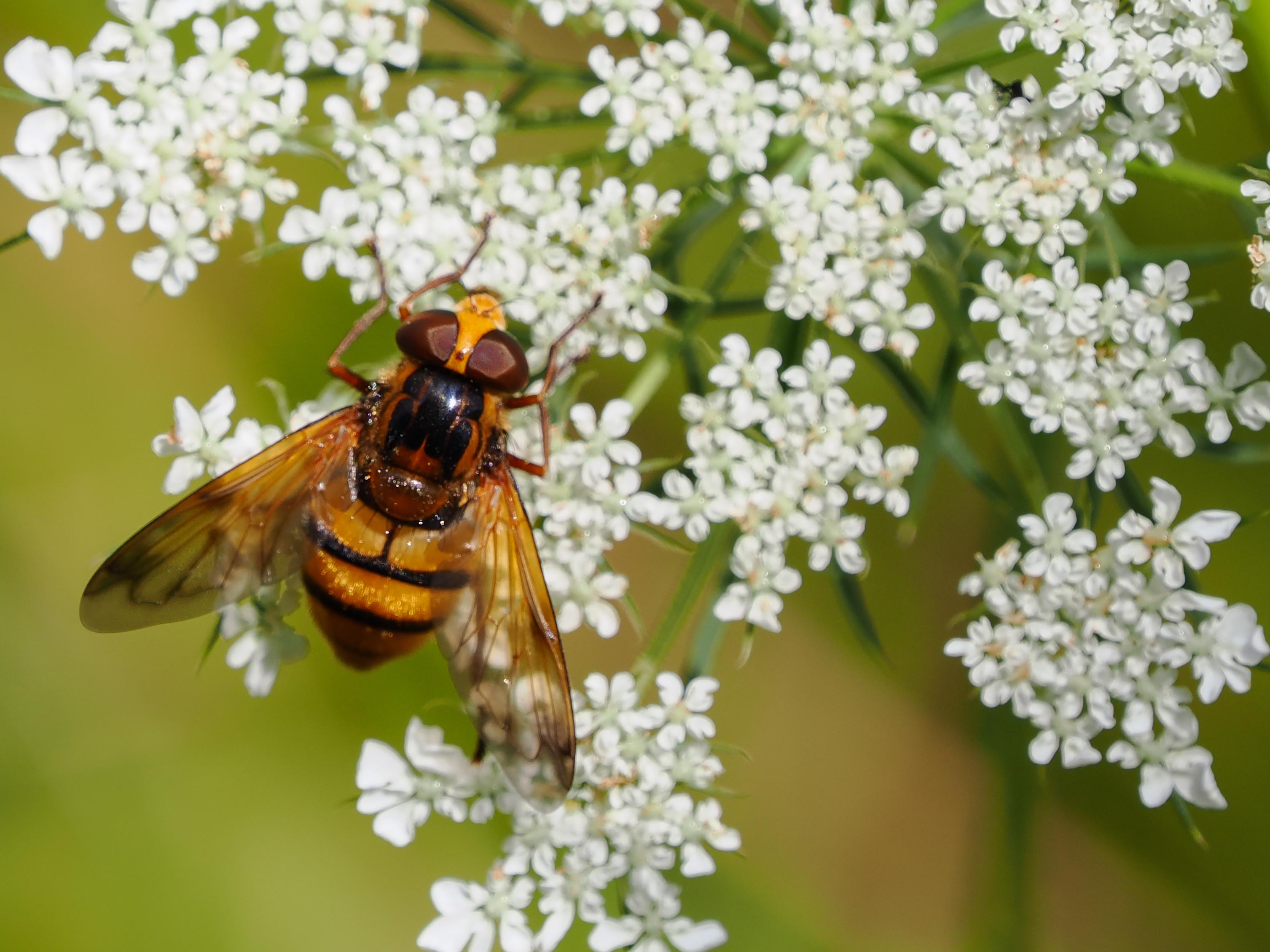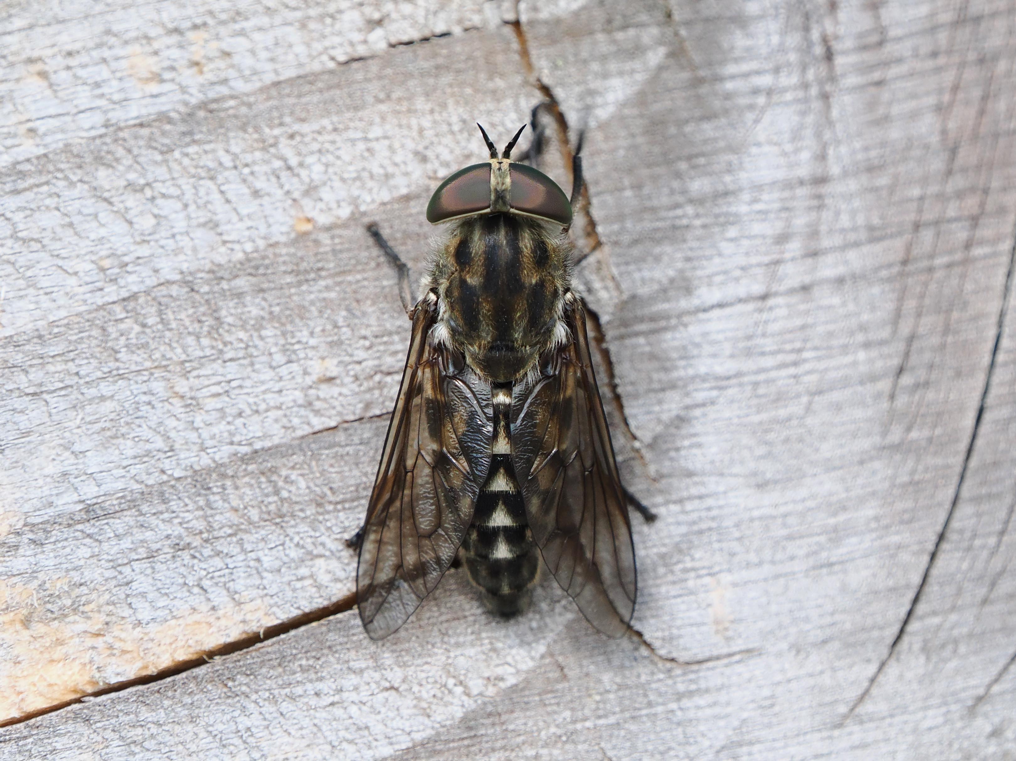On at the Toyota Pond the only Damselflies I found were the Red eyed Damselflies, so I moved onto the Green Lane Loop, on the way I found a few Myathropa florea Hoverflies (Batman Hoverfly) there seemed to be a few about today, I also found a Volucella inanis Hoverfly, a big hoverfly, lovely to see. On the Green Lane was a egg laying Emperor Dragonfly, I was finding little else along here today, so I took a seat, I was soon joined by a few ‘Common Wasps’ gnawing gently at the wooden bench, along with the wasps was a Large Marsh Horsefly [Tabanus autumnalis] .