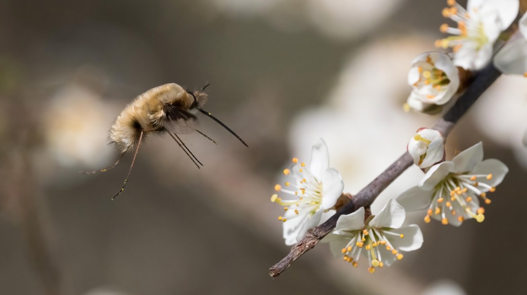 After dinner, I went over to the river side of the reserve and found an area with Primrose, a few butterflies down here with, Orange tip being the common one, also Brimstone, Peacocks and the Dark edged Bee Fly, with my first Willow Warbler of the year
